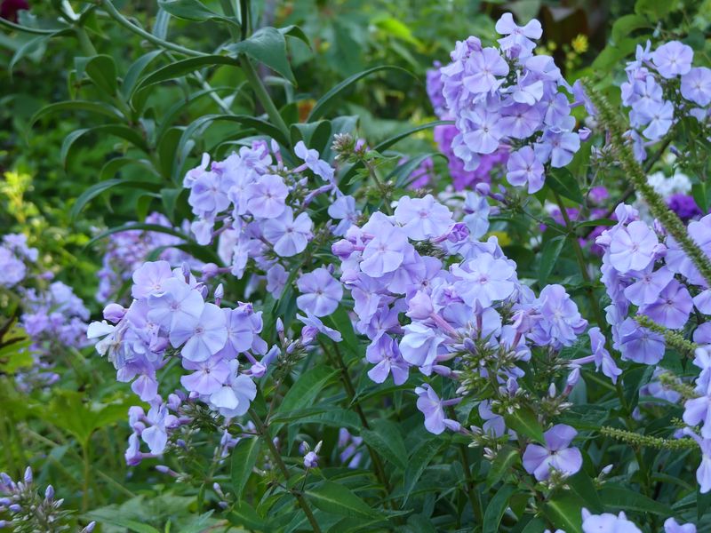 Zwischen den Zweigen des Rosmarin ist ein Phloxsämling aufgetaucht.