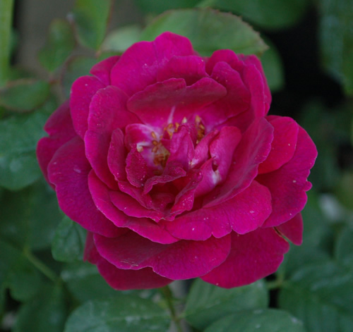 Eine Wildrose mit interessanter Farbzusammensetzung. Lila mit gelben Staubfäden.Auch im Verblühen noch sehr schön. Späte Blüte.