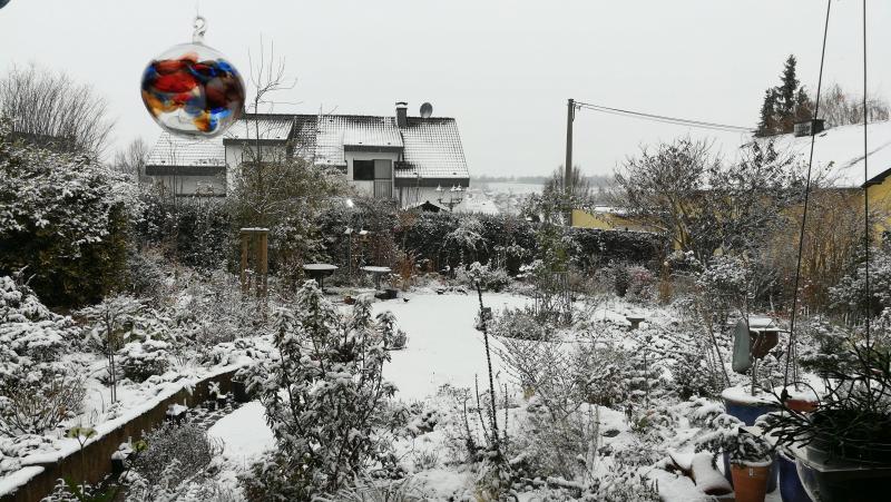 Einen Blick aus dem Wohnzimmer in einen Schneegarten kann ich heute ausnahmsweise auch liefern.