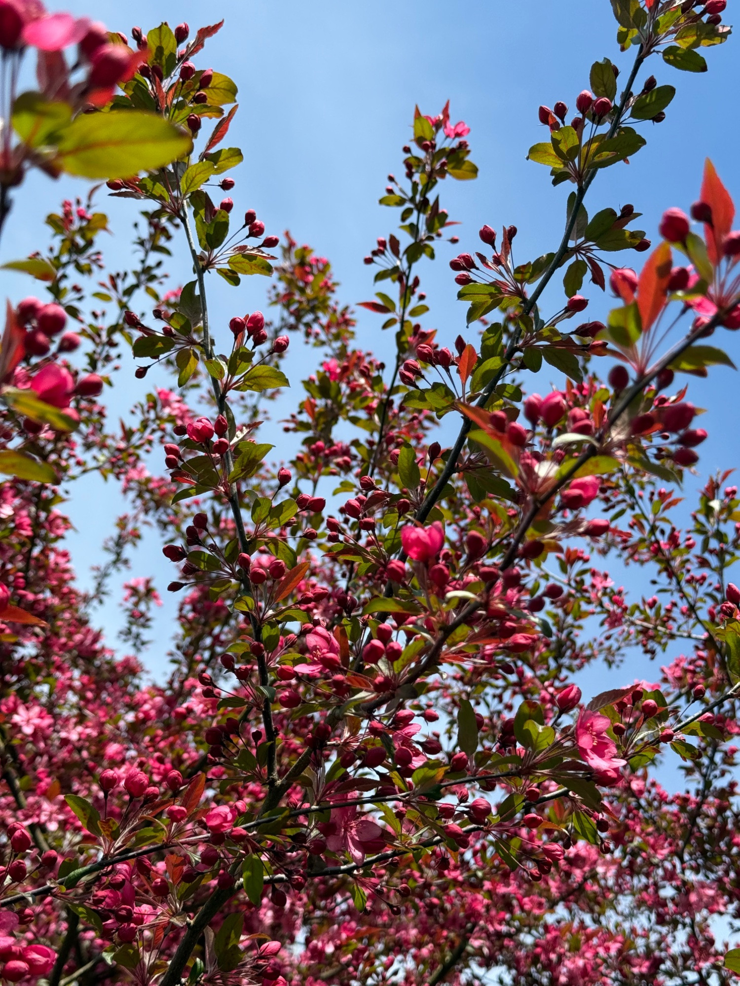 Malus 'Red Obelisk' ist jetzt fertig mit der Blüte.