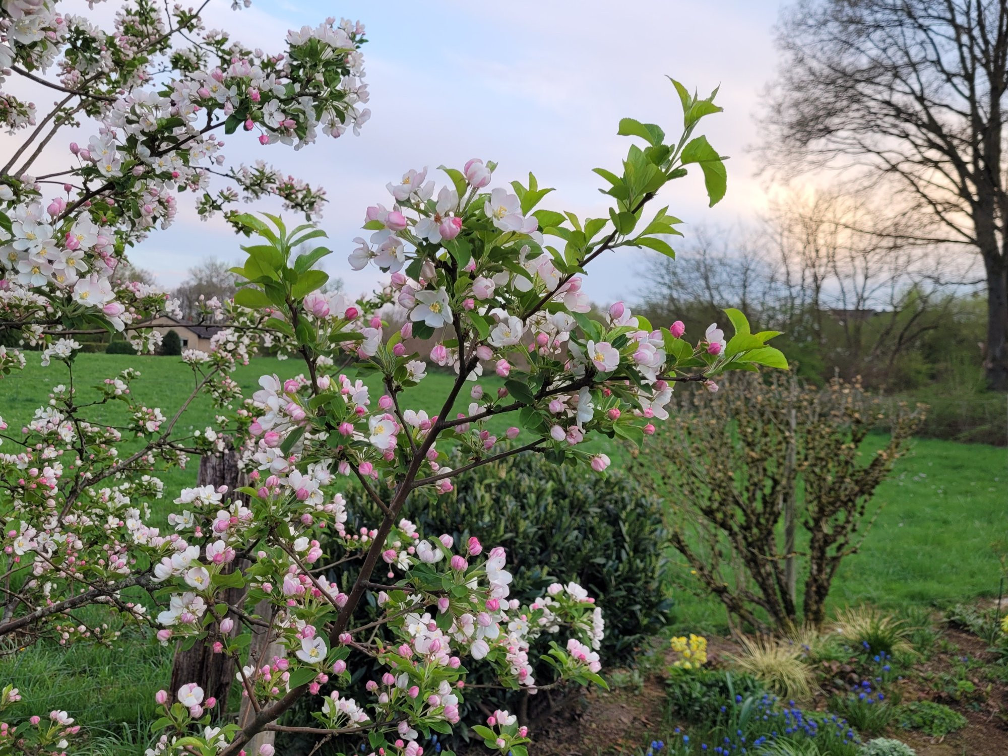 Wunderschön, diese rot blühenden Malus! Das wäre noch ein Wunsch bei mehr Platz...