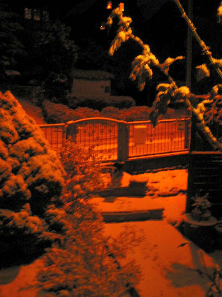 0°C, schon GG ist bei festgefahrener Schneedecke heimgekommen, mal wieder alles weiß draussen: Blick aus dem Klofenster..