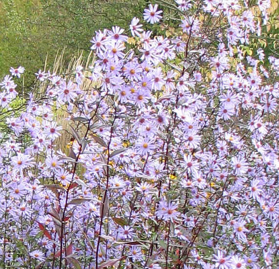 ::)Gestern war ich seit längerem wieder einmal im Staudensichtungsgarten Weihenstephan, eines der Mekkas für Staudenfreunde. Die Beete präsentierten sich ganz wundervoll! Besonders eine Aster ist mir sehr positiv aufgefallen, die aber überall als Aster laevis ausetikettiert war, was aber nicht stimmen kann. Ich kenne Aster laevis wesentlich niedriger und graublättriger. Das, was in Weihenstephan steht, könnte Aster 'Blauschleier' sein, eine Aster-laevis-Hybride.