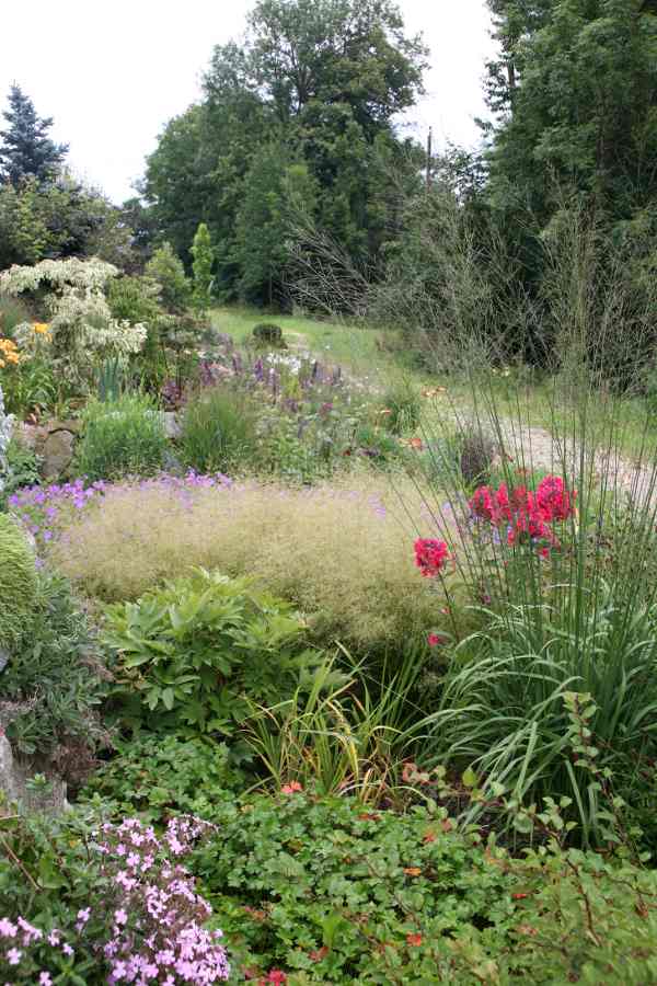 Ja, das ist mein "Beet am Bach", ein dem eigentlichen Garten vorgelagerter Beetstreifen von etwa 30x2m, den ich letztes Jahr angelegt habe. An diesen Streifen grenzt ein schmaler Schotterweg (ein Wegerecht der Gemeinde), und daran dann das Bachufer.