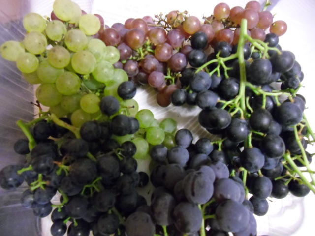 Einige Weintrauben Phönix ,Regent die rosane ist eine Unbekannte Sorte leider und glaube die Sorte Mitschurinski oder Muskat Bleu auf dem Foto.
