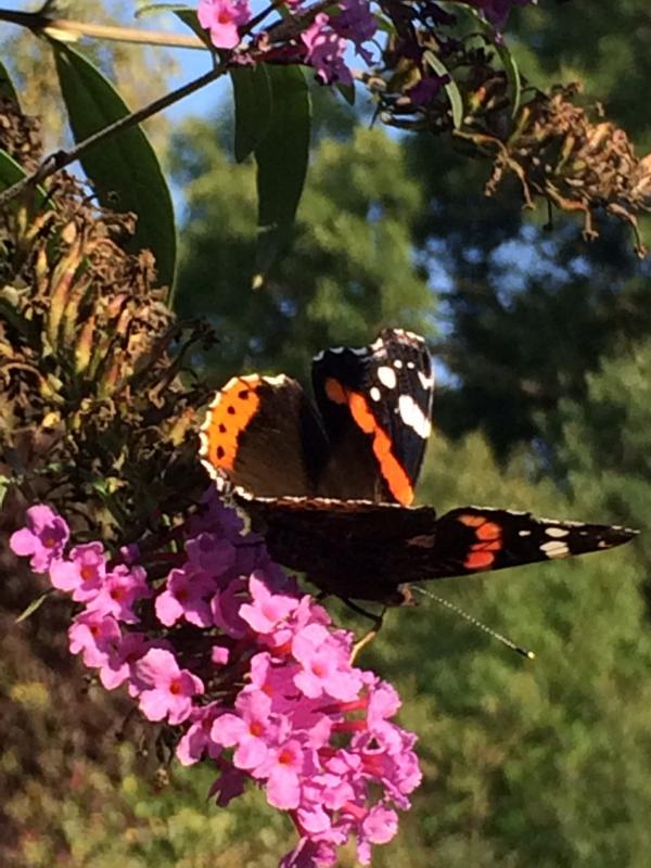 Ich hatte extra einen Sommerflieder angeschafft, so eine Zwergform im Kübel, für mehr fehlt leider der Platz.