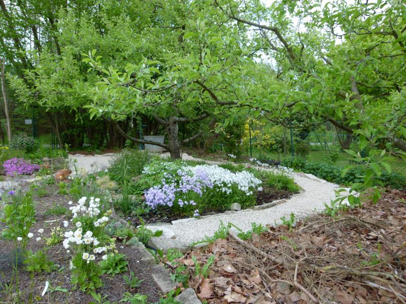 Der Schattenbereich entlang des Hauptweges ist Cyclamen purpurascens gewidmet: Das verträgt sich gut mit den Frühblühern, deren Laub die Alpenveilchen im Frühjahr ruhig beschatten kann.
