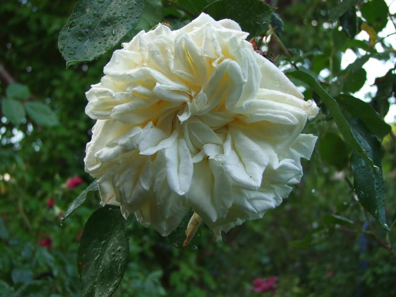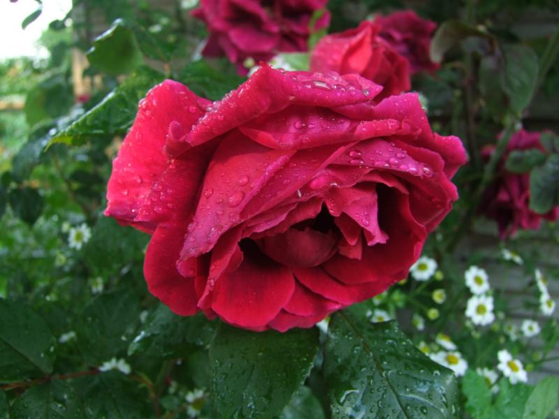 Hier ein paar regentrudefotos von meiner 'Crimson Glory.Ich krieg die nie richtig hinfotografiert.Bei Sonne schon gar nicht.Sie ist recht dunkelrot und die Blüten verblauen mit zunehmendem Alter.
