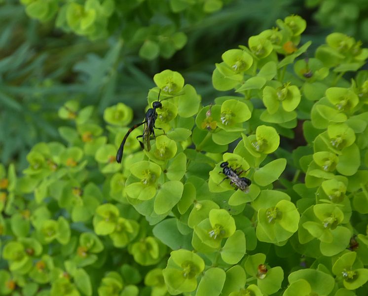 Jetzt blüht bei mir Euphorbia seguieriana. Sie ist bei Hautflüglern offensichtlich sehr beliebt.