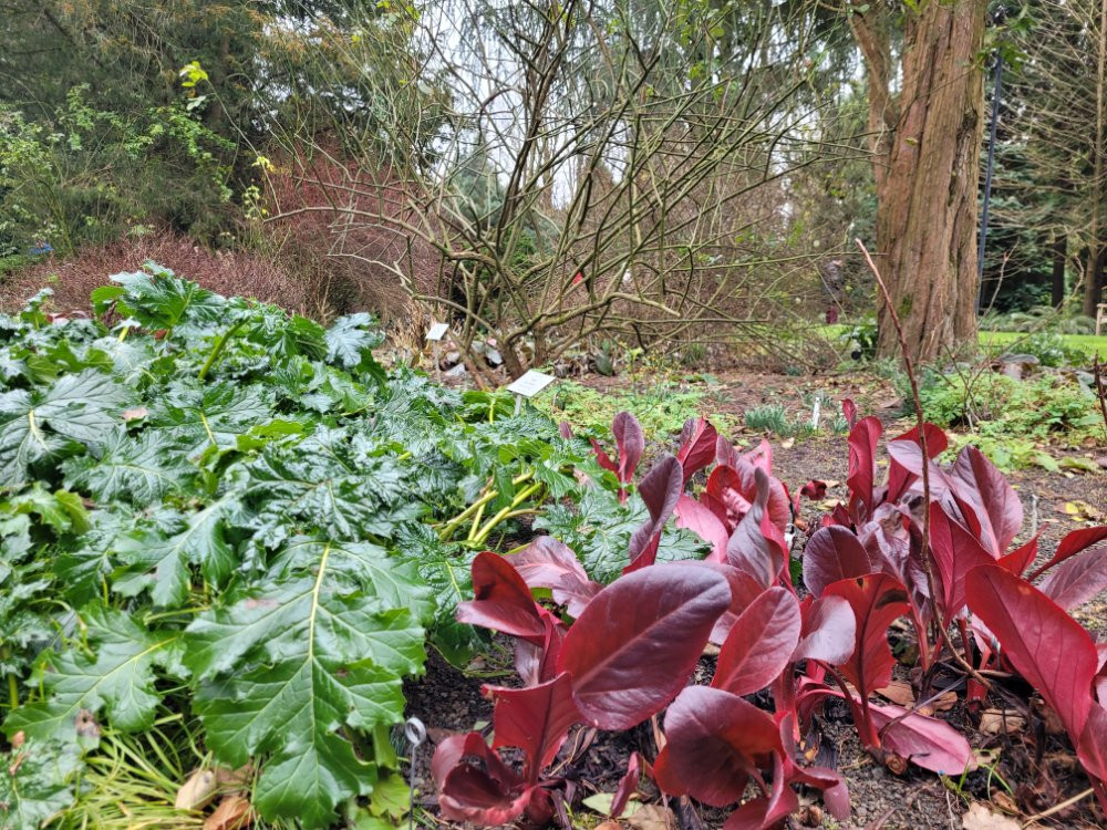 Tolle Kombis mit Bergenien werden gezeigt. Hier die 'Rote Schwester' als absoluter Hingucker.