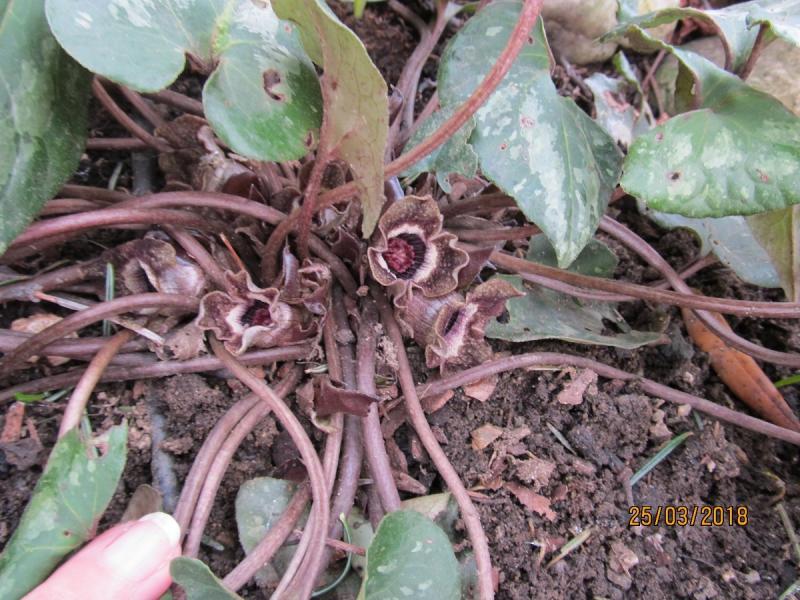 Interessant ist nur, dass bei dem sog. pontica-complex, zu dem auch A. steupii gehört, die Knollen nie tiefer als ein paar Zentimeter im Boden sitzen, wenn überhaupt! In humosen, vor Feuchtigkeit triefenden Felsspalten stehen die Knollen auch gern mal ein paar Zentimeter über dem Erdboden in situ. Warum sie trotzdem bei "natürlicher" Tiefe dann jetzt schon blühen...? Normalerweise ist es ein Temperaturreiz im Frühjahr, der bei den meisten Aristolochien des Mittelmeerraums dazu führt, dass die schon im Herbst angelegten Ansätze mit dem Wachstum loslegen, während sie normalerweise im Winter mit dem Wachstum einfach stehen bleiben. Vielleicht waren es die paar sonnigen warmen Tage der letzten Wochen?