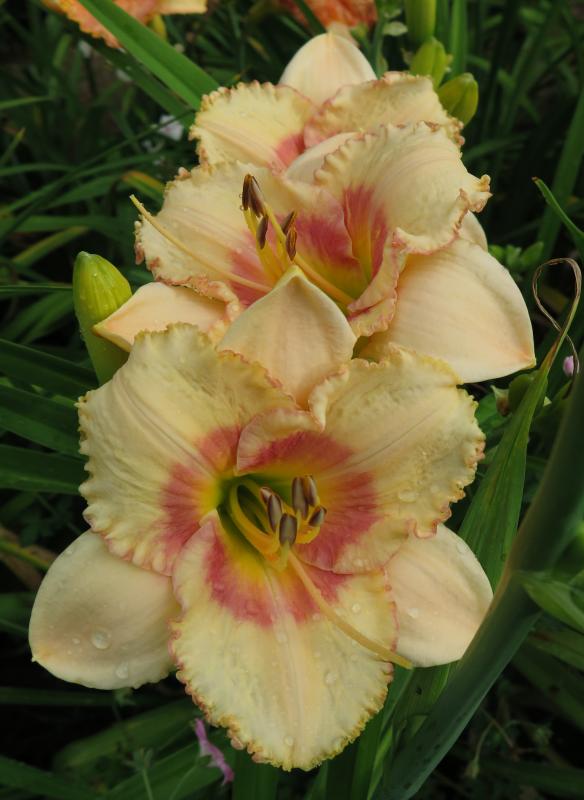 Man sieht, dass sogar ein bisschen Pollen auf das darunter liegende Blütenblatt gefallen ist, es sollte also für eine Kreuzung reichen. Interesant, dass trotzdem kaum Kinder da sind - vielleicht ein spannendes Experimentierfeld?Danke für die Anleitung! Habs gleich ausprobiert, hoffe nur, dass ich den Link dann wiederfinde, wenn ichs brauche, gebookmarked hab ichs auf alle Fälle.Eines seiner Kinder - Foxvale Harold and Florence - ist aber schon ziemlich spekakulär! So ungefähr hab ichs mir aber mit ihm auch vorgestellt ... ein sehr auffälliges "Teil" für den Vordergrund.@ all: Diese hier - Chance Encounter - läuft dieses Jahr zur Hochform auf. So schön war sie noch nie, und ich hab mich insgeheim bisher gefragt, warum sie alle so loben. Jetzt weiß ichs