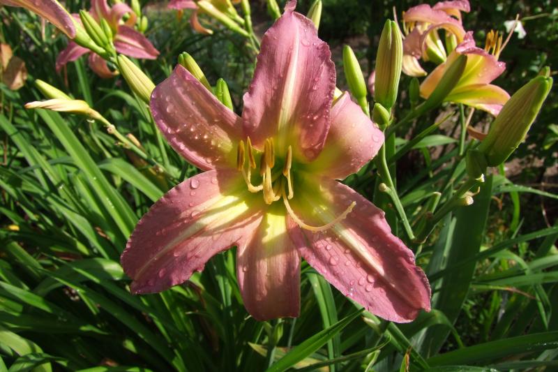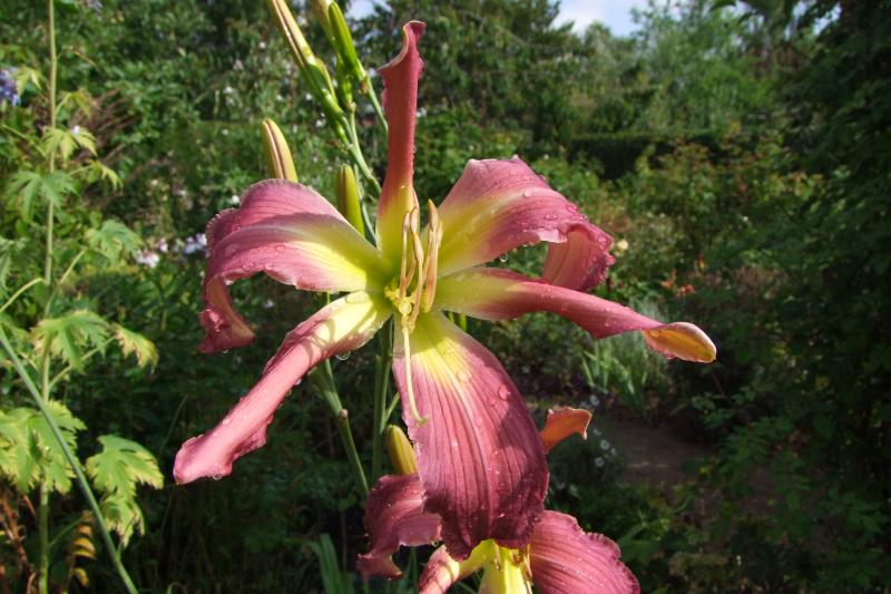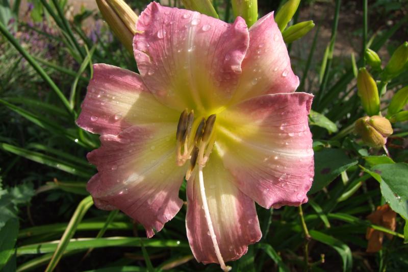 Heute vormittag nach nächtlichen und stürmischen Gewittergüssen 'Lavender Handlebars'noch einigermaßen vorzeigbar.