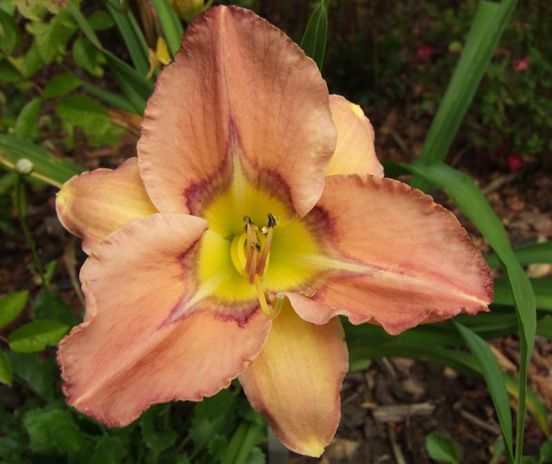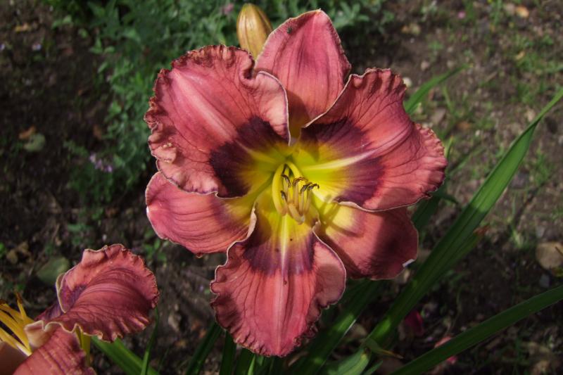 ?Die Blüten sind größer als bei der Mama (16,5 cm) und liegen bei im Schnitt 19 cm. Manchmal waren sie morgens (das ist bei mir im ersten Rundgang zwischen 7 und 8 Uhr) noch nicht ganz geöffnet, aber bis mittags dann doch. Und hoch ist der Blütenstiel, 86 cm. Passt also zu der Blüte.Tja, die Farbe...Eigentlich bin ich ganz hingerissen von diesem Überraschungsei. Doch vermutlich ist es ein "Öks" ?Was meint ihr denn ? Ist das "was" ? Habt ihr etwas ähnliches ? Hui oder pfui ?