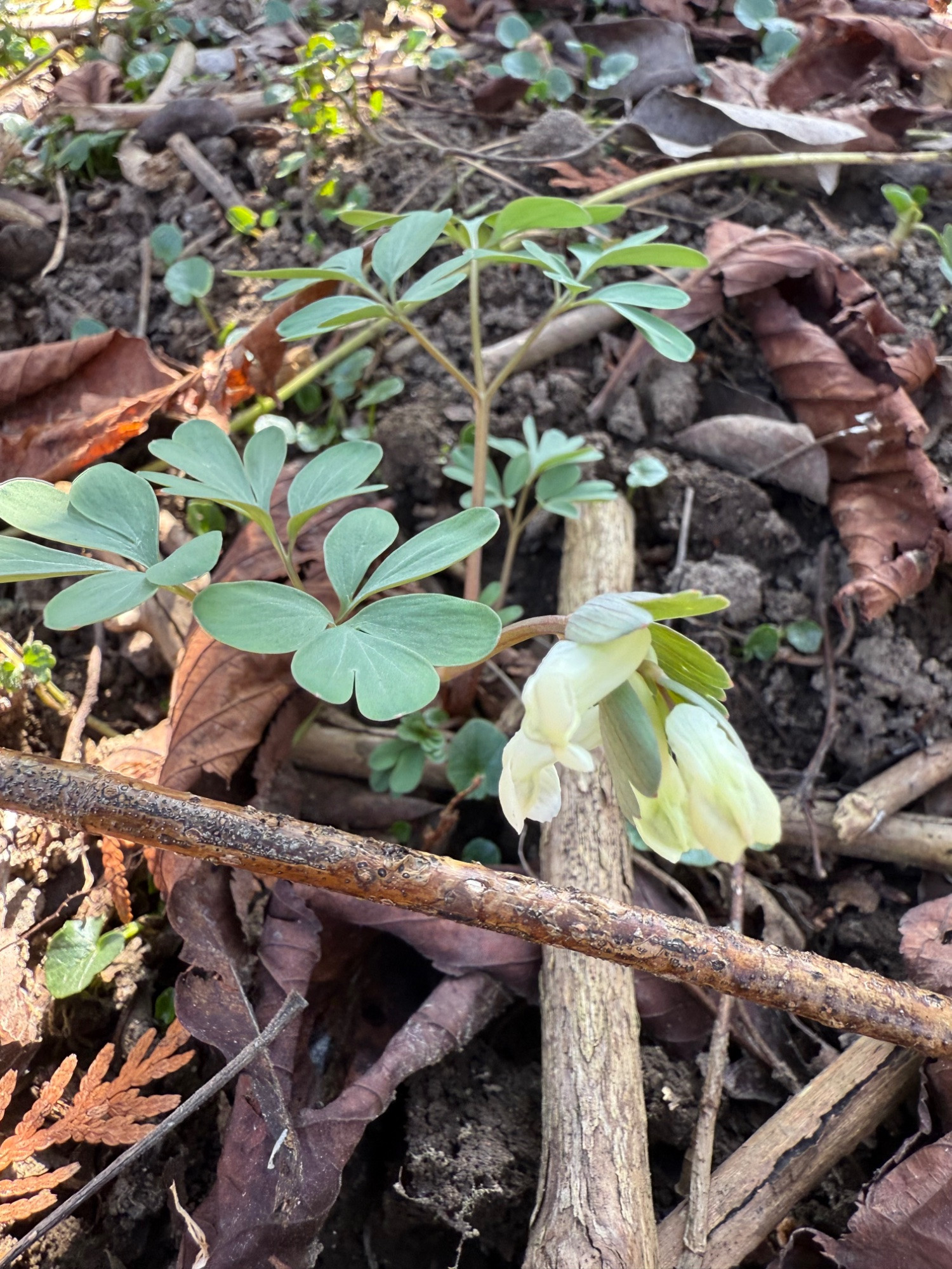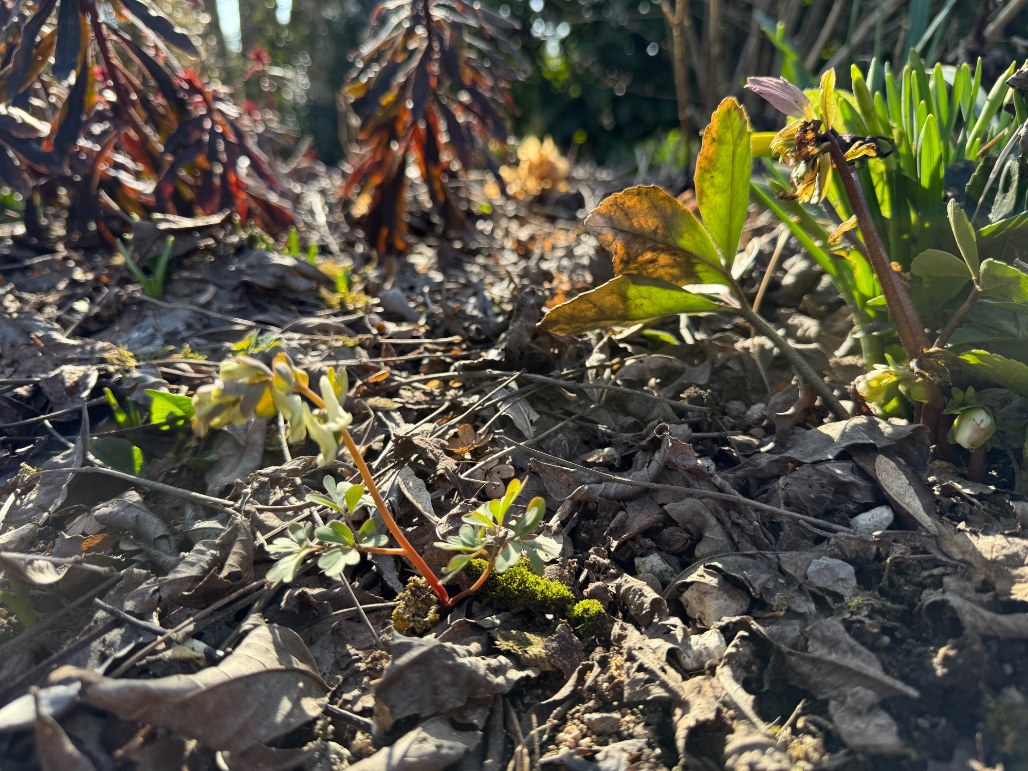 Hier ist der erste Corydalis malkensis aufgeblüht.