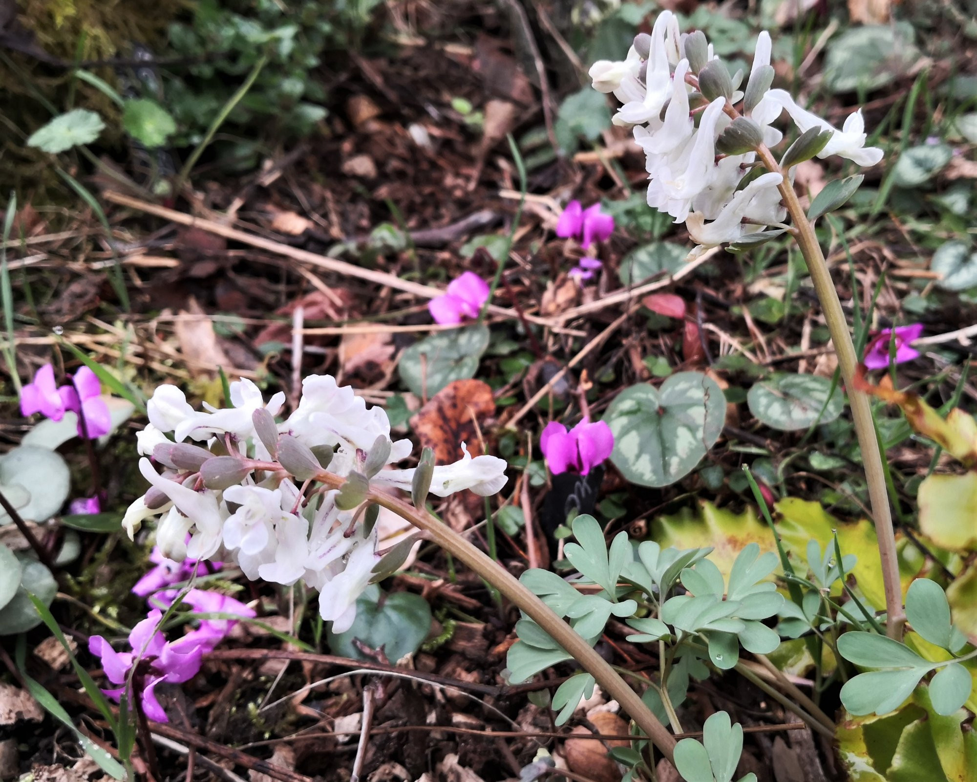Hier blühen C. malkensis. Wie ich heute sah versamen sie sich auch recht gut. Außerdem blüht C. solida 'White Swallow'.