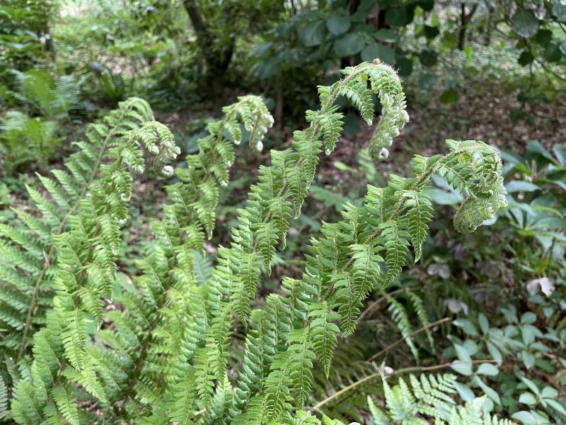 Es sind ganz normale Polystichum-Wedel zu erkennen und eben diese leicht "cristaten", Überblick: