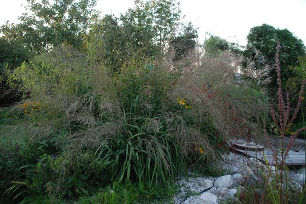 …) – sind zwar noch schlank, gucken aber bereits jetzt lässig über den 1,6 m hohen Maschendraht. Jedenfalls mit den Blüten. Fetter Lehm scheint Chinaschilfen überhaupt zu gefallen: Auch alle anderen neuen Miscanthüsse sind hier abgegangen wie Schmidts Katze, vom Start weg. Ich bin gespannt, wie’s nächstes Jahr weitergeht. Schöne GrüßeQuerkopf
