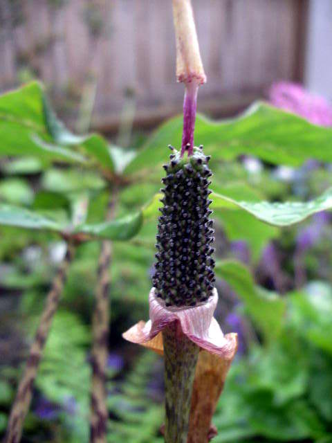 @ebbieja, das ist ein weibl. nepenthoides. war der das einzige blühende exemplar?@baumfarnwo steht denn dein getopfter a. triphyllum? im haus oder im garten?soweit ich erkennen kann, treten auch blattschäden auf (glasig werdendes blattgewebe?). also einige meiner getopften aris haben blattschäden wg. der nachtfröste, weil ich sie zu bald aus dem gewächshaus geholt habe. war dein triphyllum auch nachtfrösten ausgesetzt? meine im garten ausgepflanzten triphyllum beginnen jetzt gerade zu blühen, waren also zur zeit der nachtfröste noch im boden.mögliche ursachen könnten also nachtfröste sein oder zu intensive sonne.