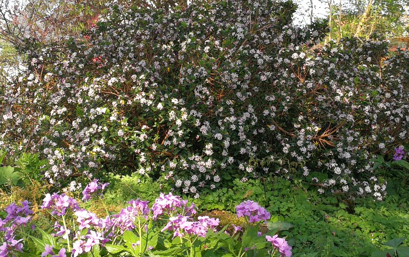 gegen eure schätze ist der hier was banales...er beeindruckt allerdings durch seine größe...er dürfte die 2,50 m durchmesser schon überschritten haben...Daphne tangutica verströmt bei der momentanen wärme wahre duftwolken im garten