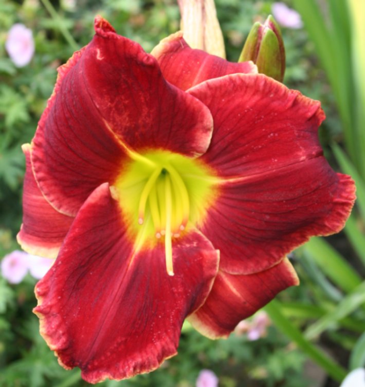 Eine schöne Kombination, elro!Heute öffnete sich die erste Blüte von Watermelon Slice. Das Rot ist fantastisch, leider fehlt der typische helle Rand: