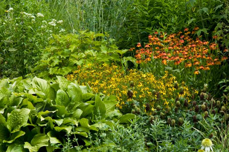 Helenium sind toll, wenn man Glück hat. Dies ist ein Foto aus dem Boga, bei mir haben sie sich auch größtenteils verabschiedet, wahrscheinlich wegen zu großer Trockenheit und Bedrängung durch Stärkere.