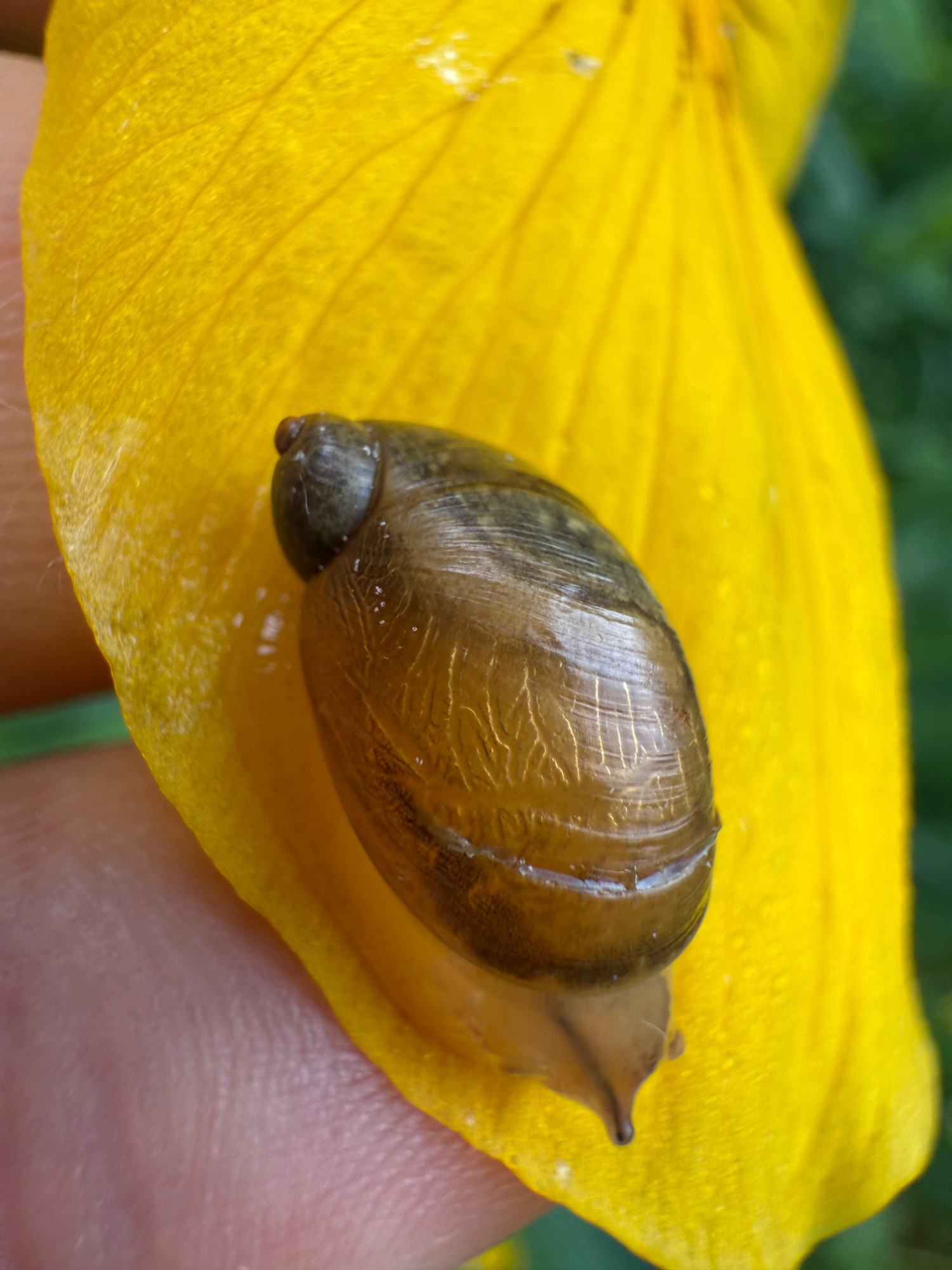 Das Gehäuse der aufgeblasenen Bernsteinschnecke glänzt wirklich sehr schön