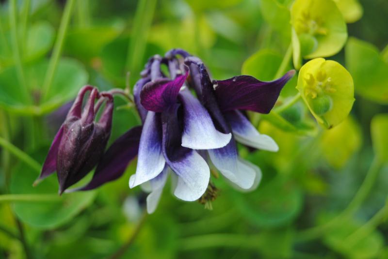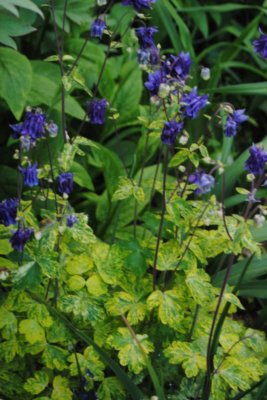 Die blauen Akeleien werden hier immer mehr und es gibt sie in vielen Formen. Hier sind zwei verschiedene durcheinander gewachsen