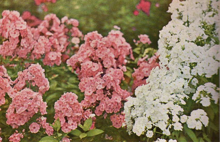 Die Geschichte, Herkunft oder Entstehung der rauchigen Phloxe würde mich sehr interessieren. Wurden durch Gaganow erstmalig solche Züchtungen/Sorten hervorgebracht? Welcher Rauchphlox ist als solcher Sorte No.1? Gab es im 19. Jh. vergleichbare Sorten? Bei Lemoine vielleicht?@Ljena, Du hattest nach Fotos von 'Schneeberg' gesucht - hier eine Abbildung von 1953, zusammen mit 'Pastorale'. Eine bessere Bildqualität kann ich leider nicht anbieten.