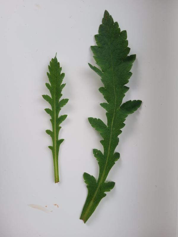 Hier noch ein großes Blatt von P.a. (rechts) neben dem größten Blatt von P.r., Unterschiede in der Stärke der Behaarung kann ich allerdings ohne Lupe nicht erkennen.