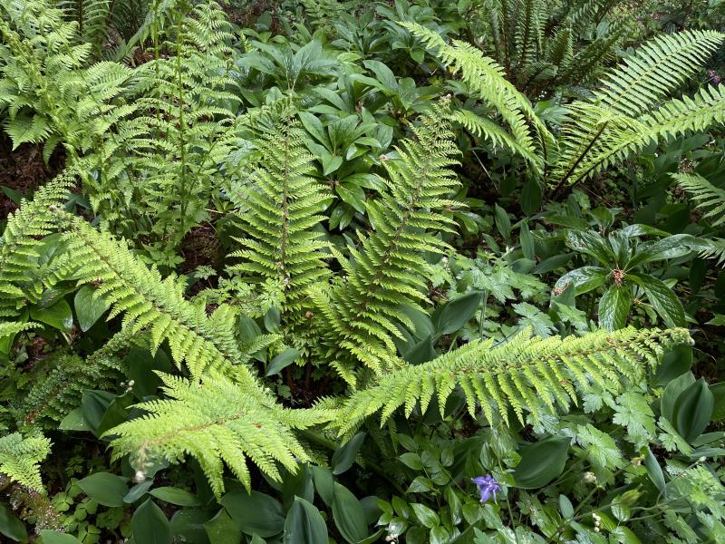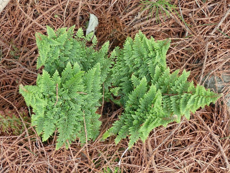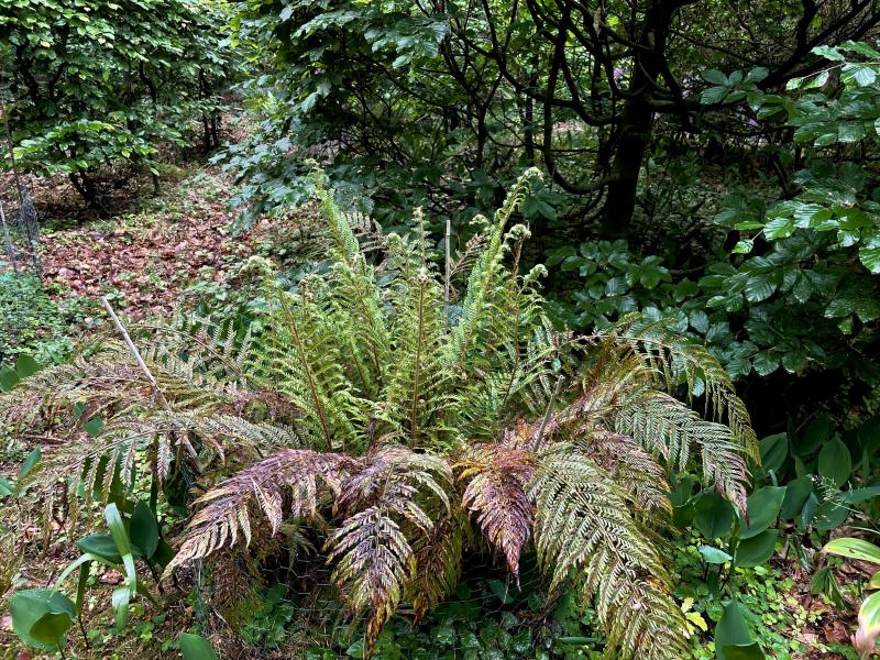 Und noch so ein kurzwedeliger Polystichum 'Weihenstephan', im Herbst erst unter den Sequoia gepflanzt.