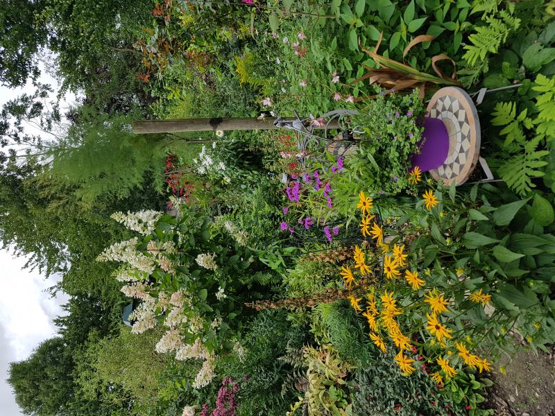 Helianthus mit Hemslaub und fast abgeblühtem Phlox :