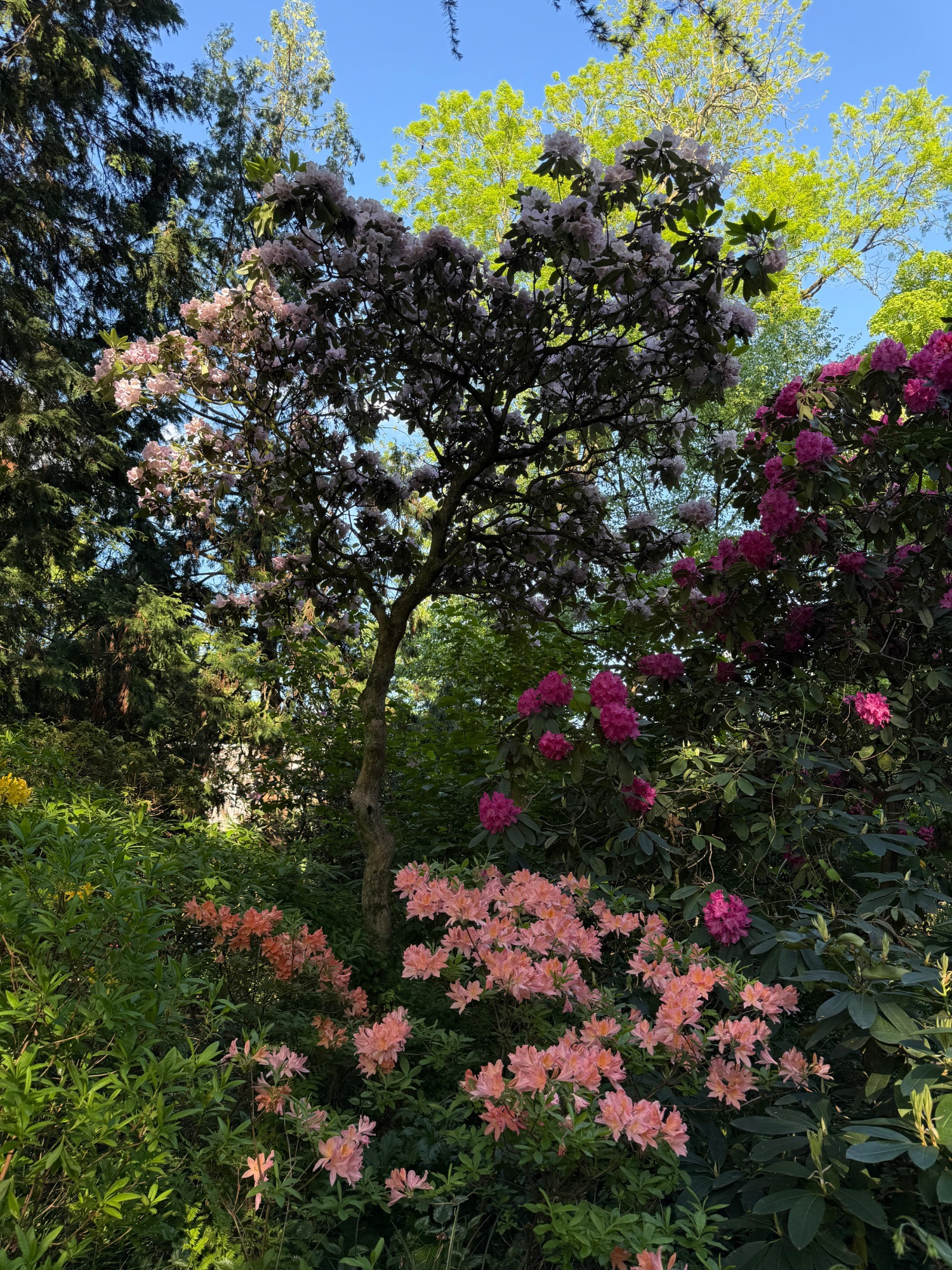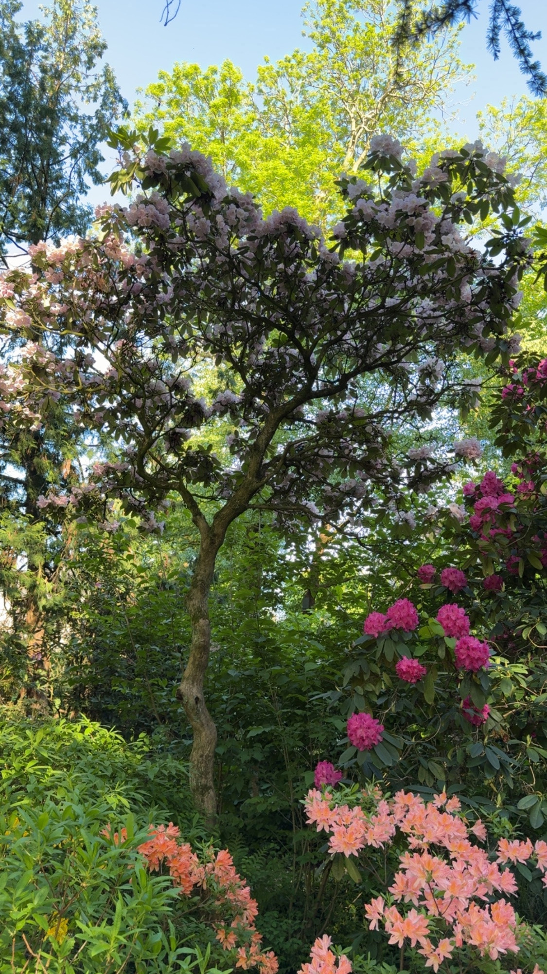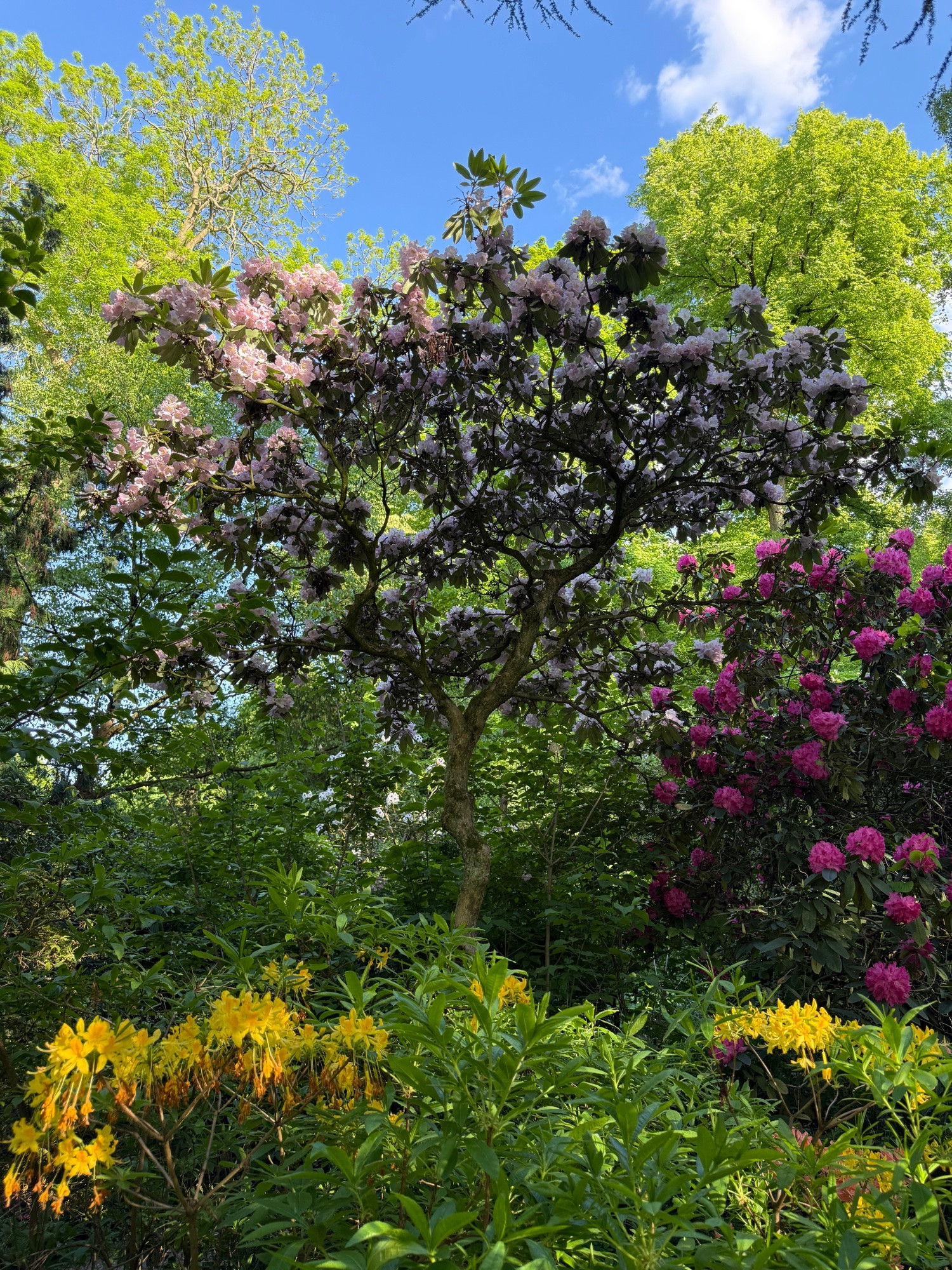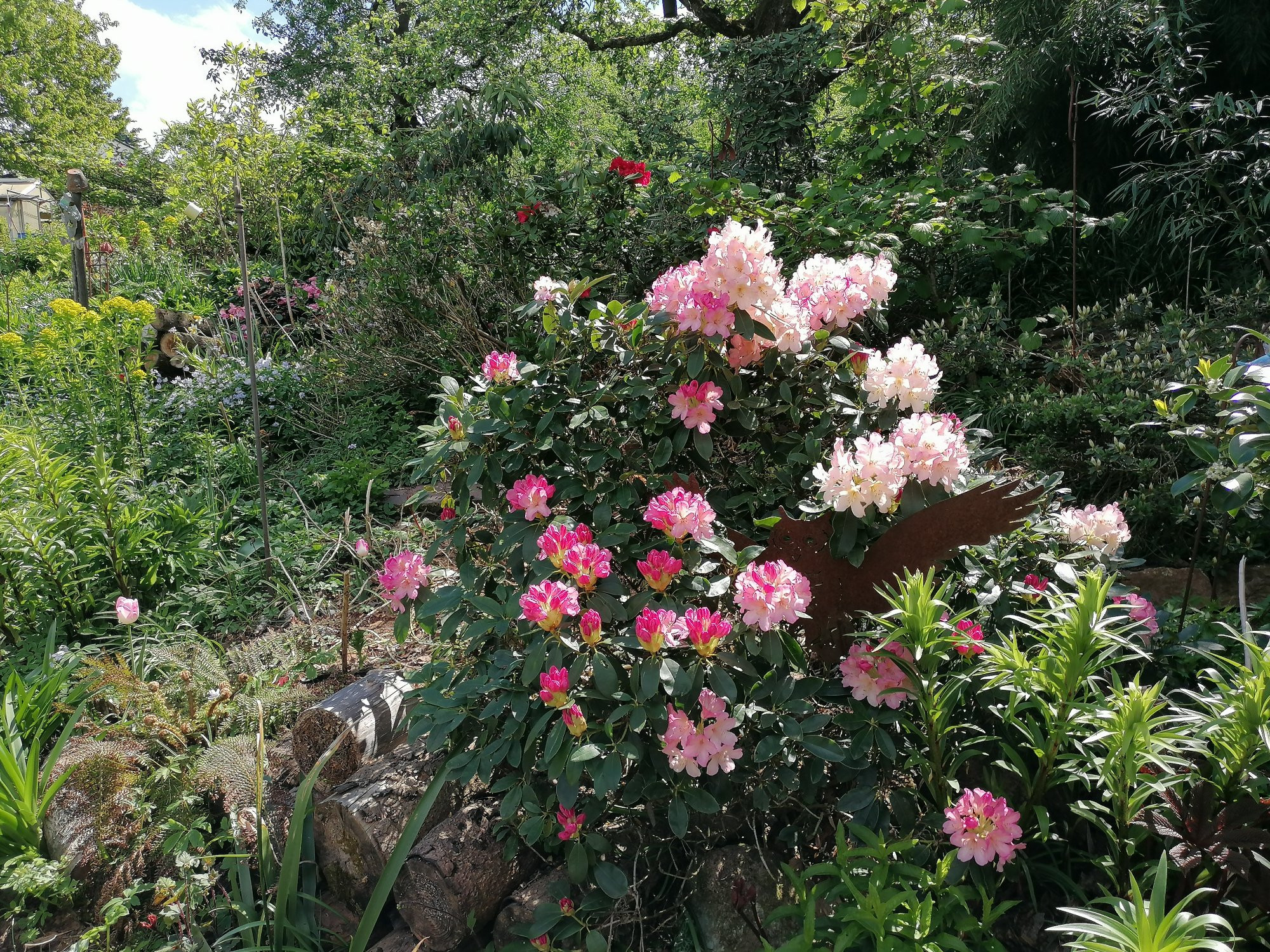 Es gibt deutlich stärker vernachlässigte und hängendere Rhodos hier in der Umgebung. Die sich selbst überlassen werden. Die blühen auch perfekt.