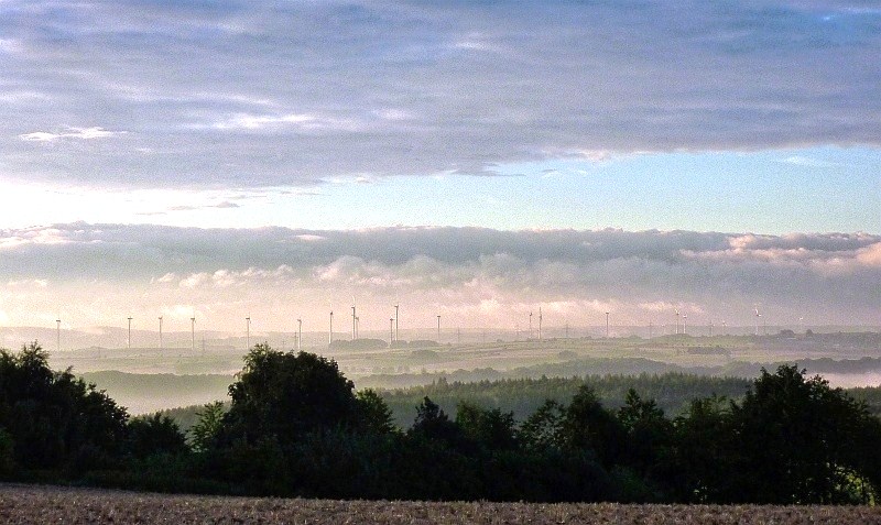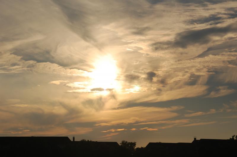 Wolkenspiele gestern abend. Wenn ich das richtig sehe ist in der untersten Wolkenschicht die Entstehung von Kelvin-Helmholz-Wogen zu sehen...