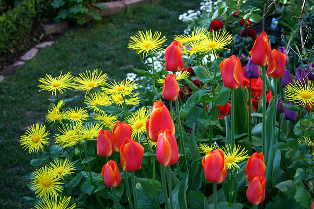 Die Kombination Gemswurz mit roten oder orangenen Tulpen sind ein echter Hingucker und begeistert mich immer wieder.Fuliro