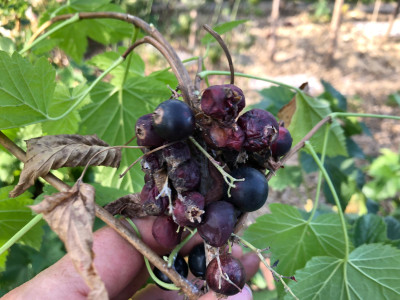 wahrscheinlich Cassisima Blackbells, hab eilig geerntet vor angesagtem Gewitter und muss noch Etiketten bzw. Listen konsultieren, eine zweite, besonders großbeerige Sorte sah auch so schlecht aus