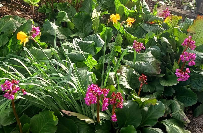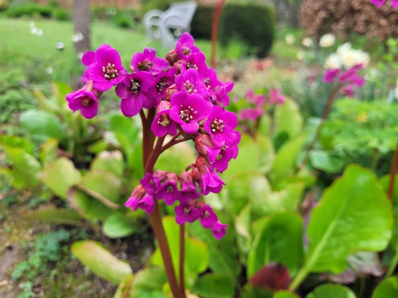 Ja, die Bergenienblüte ist dieses Jahr in der Tat recht üppig, nur meine nie blühenden Bergenien mit den Riesenblättern, die schon seit Urzeiten im Garten stehen, blühen auch dieses Jahr nicht. Dafür sie die weißen aber weiterhin sehr prächtig, und auch eine andere alte Sorte mit recht großem Laub hat aktuell mehrere Blütenstängel gebildet.