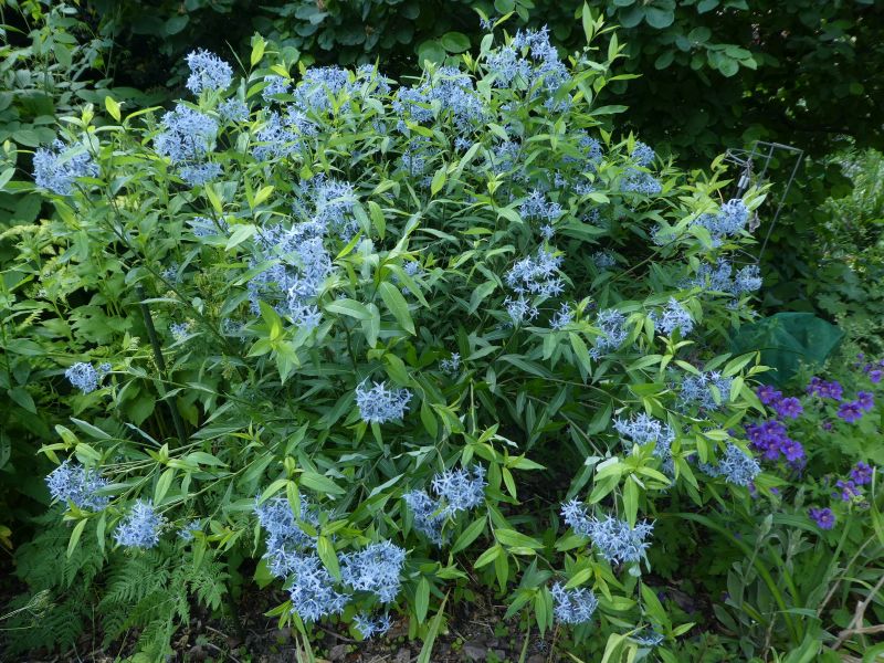 letztere ist Amsonia Hubrichtii, also der Bastard mit Amsonia tabernaemontana. Die Einstängel-Amsonia kann auch Amsonia illustris sein. Die ist so hartnäckig und schiebt immer nur einen Trieb. Kann sie jahrelang so machen.