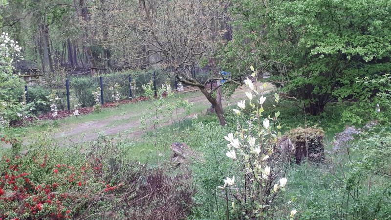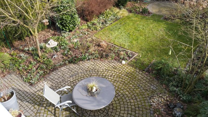 Hier noch ein trüberes Bild aus dem Küchenfenster nach hinten in den Garten, ist aber noch im Vorfrühling gewesen...
