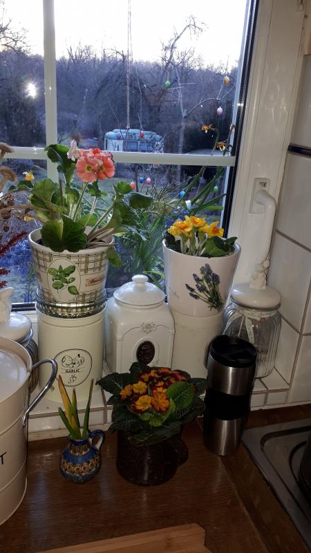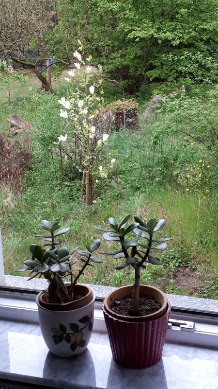 heute habe ich auch mal zum Küchenfenster hinaus fotografiert. Nix besonderes, keine spektakuläre Aussicht, keine gelungene Pflanzenkombination, nichtmal besonders gut fotografiert. Trotzdem erfreue ich mich da gerade jeden Tag dran :D