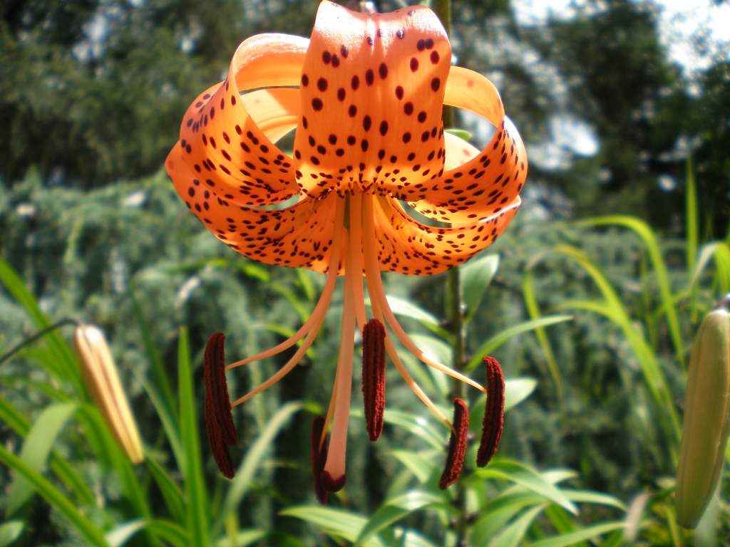 Ich mußte meine L. henryi auch stützen, sie sind allerdings noch im Topf.Hier beginnt Lilium lancifolium mit der Blüte.