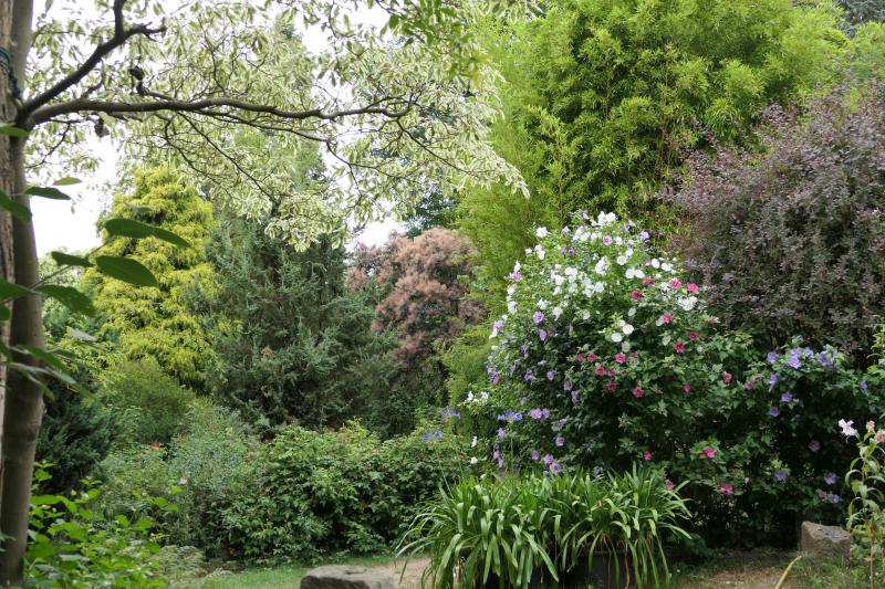 Meinen Begleiter hatte ich schnell aus den Augen verloren (als Nichtgärtner war er von der überbordenden Pflanzenfülle überfordert und hatte sich nach dem ersten Rundgang eine Sitzgelegenheit im Eingangsbereich gesucht ;)). Ich war allein im Garten, außer Vogelgezwitscher war nichts zu hören und obwohl es um die Mittagszeit war, spürte man die Hitze nicht. Eine zauberhafte Stimmung.