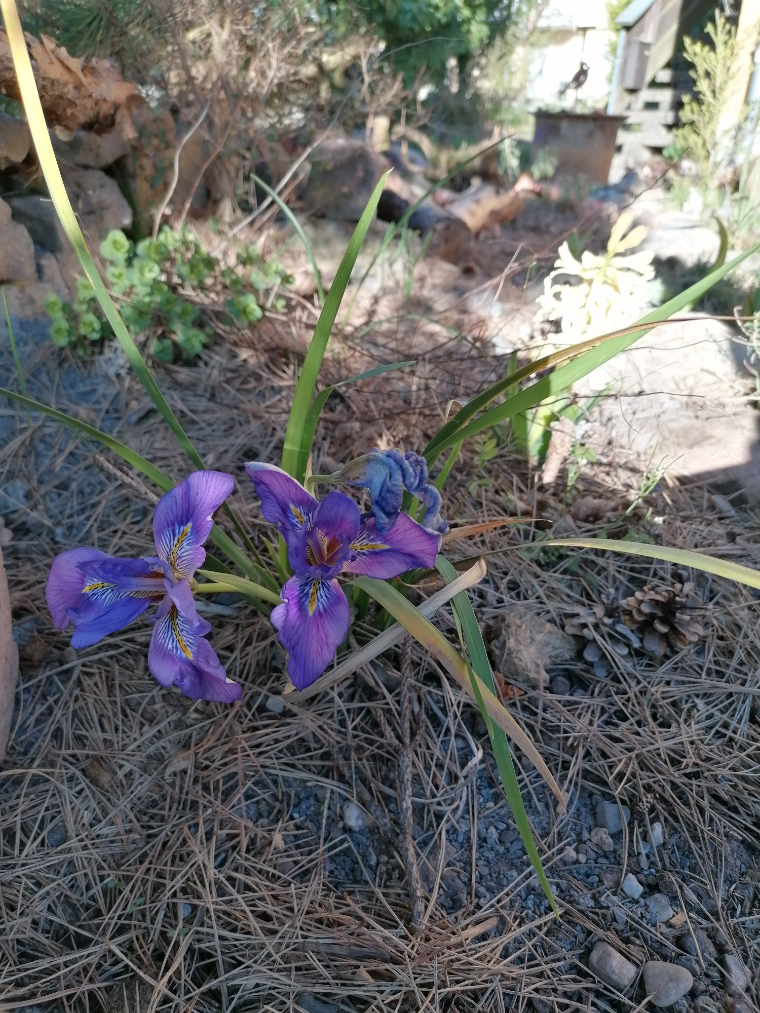 Die hat deutlich kürzere Blätter als die meinige mit den lila Blüten. Die Farbe der deinigen Algerian Form scheint ein dunkleres lila zu haben als meine, die dann wohl tatsächlich Iris lazica ist.