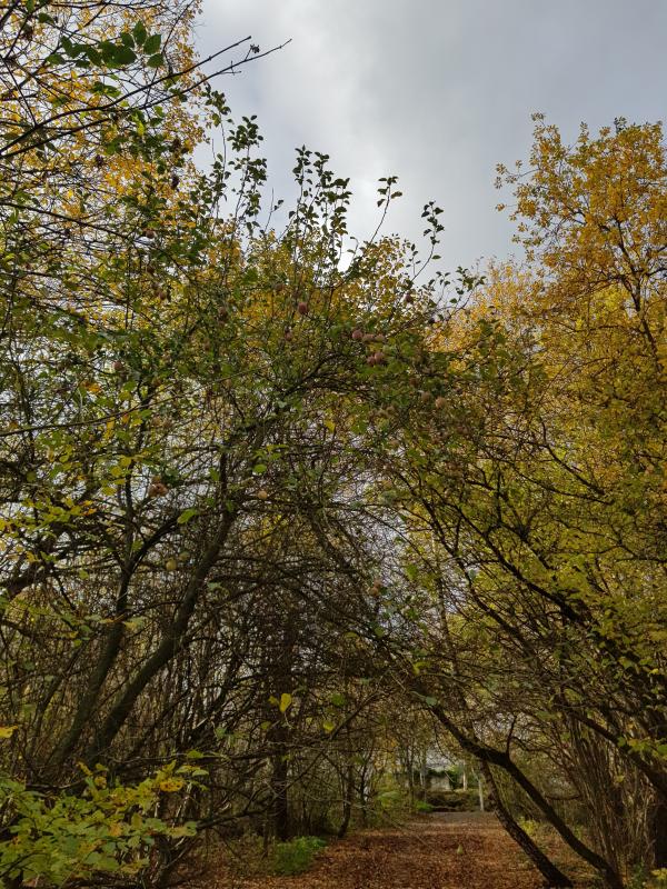 Anderes Thema: Der vor etwa vor vier Wochen gezeigte, als Krügers Dickstiel identifizierte Apfel ist richtig gut geworden. Wie vorhergesagt, ist die spitze Säure verschwunden, mit dem beginnenden Weichwerden hat er auch den unangenehmen, in oder unter der Schale sitzenden Beigeschmack verloren. In Aroma und Süße kann er mit guten modernen Äpfeln voll mithalten, wobei der geschmackliche Höhepunkt mit dem beginnenden Weichwerden bereits überschritten wird. Ich bin jedenfalls froh, dass ich in den vergangenen Wochen noch zweimal schöne Falläpfel aufsammeln konnte. :)