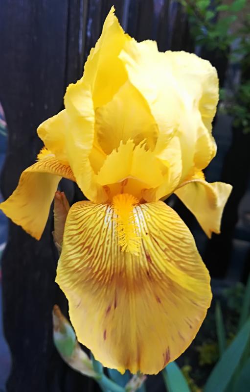 Habe auch zwei, zuerst eine Plicata, hoch, aber nicht überlang, mittelgroße gewellte Blüten, da es hier schon weit fortgeschritten ist eher spät. Meiner Meinung nach keine der üblichen Verdächtigen, keine `Rococo´, `Stepping Out´, `Going My Way´.... Auch meine `Loop The Loop´ sieht anders aus... Der Rand ist wirklich relativ blau, wie alt keine Ahnung, der Lieferant bekommt Emails mit Nachfragen in dieser Richtung irgendwie nie! Auch wenn man sie alle drei Tage neu abschickt ;D.