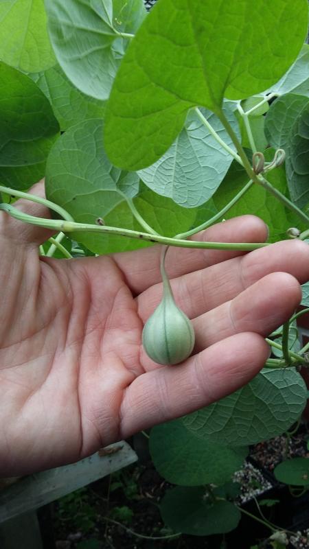 Die dickste Knolle von Aristolochia steupii: Ich habe dieser einen großen Topf gegönnt, das scheint das Wachstum zu fördern. Die in kleineren Töpfen sind auch weniger dick.