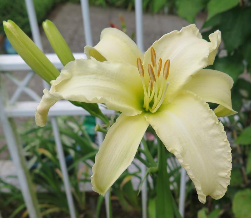 Seit 7:00 Uhr hat es sich von 11 Grad auf tropische 15 Grad hochgeschraubt....Verärgerte und verschlafene Taglilien-Gesichter blicken mir im Garten entgegen - aber die halbgeöffneten Blüten stimmen noch hoffnungsvoll, in den letzten Tagen öffneten auch nachmittags noch viele.Auf der Beliebtheitsskala einen großen Schritt nach vorne macht dieser Sämling. Offen und hell