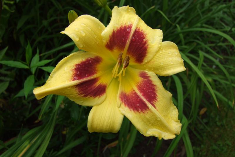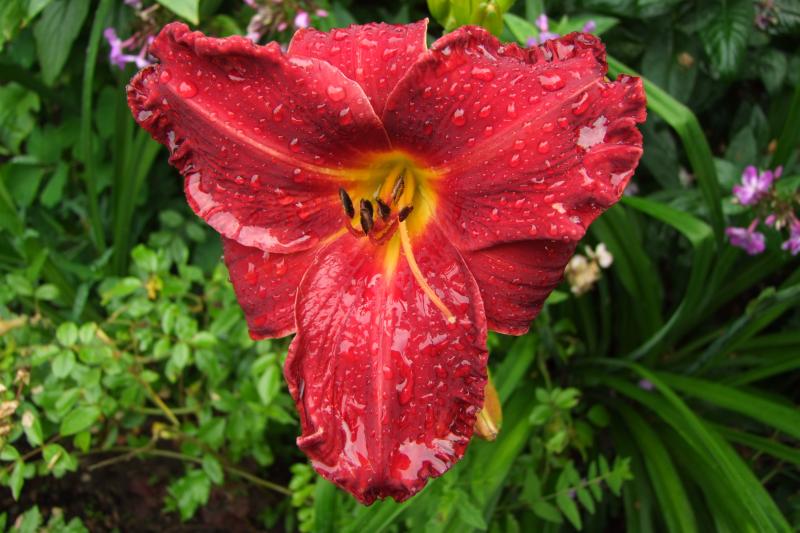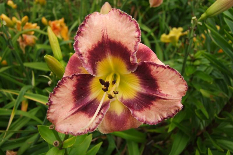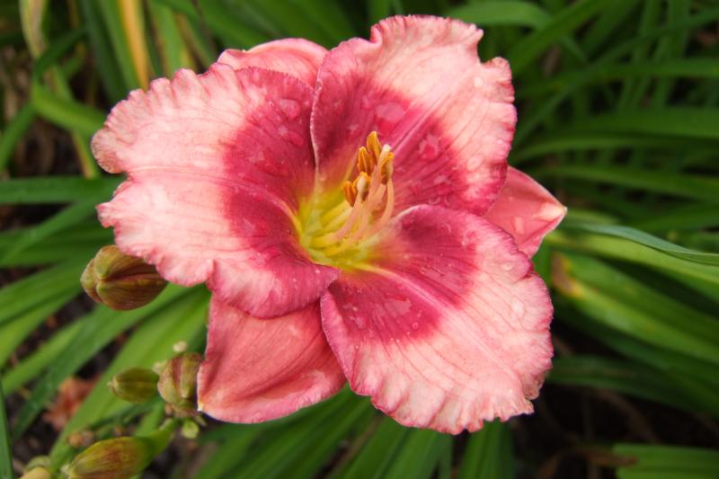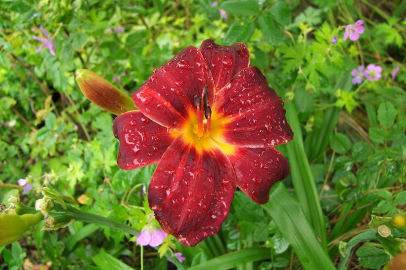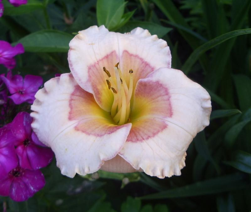 Eine schöne Blüte, die der auch heute wieder wetterlichen Unbill mit Regenschauern und starkem Wind getrotzt hat, habe ich abends auch noch gefunden. Maliko hat diese Taglilie zwar kürzlich schon gezeigt (war es gestern oder schon geschätzte 15 Seiten zurück? ;D), aber das ist wohl schnurz. Raspberry Winter (Trimmer 1999)... eine der wenigen Hems, die dieses Jahr auf mehreren Stielen geblüht hat, reich geblüht hat und an der ich nicht eine schlechte Blüte gesehen habe. So für sich gesehen sind diese wirklich hübsch, klein, kompakt geformt und mit einem interessanten Augenmuster, im Beet wirken sie allerdings leider etwas künstlich-plastisch, finde ich. Und die Kombi mit dem Phlox geht mal gar nicht. ::)
