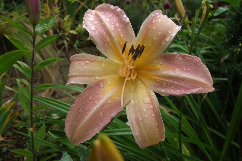 bei dem Dauerregen sehe ich Blüten nur vermatscht. Aber stimmt, Sturm und Regen haben dem einzigen Blütenstiel, ich hab' sie erst seit letztem Jahr nicht viel anhaben können. Ich kann Morgen mal messen, aber hier hat sie geschätzt höchsten 80 cm.Noch was, es war hier bis zur letzten Woche sehr, sehr trocken und ich habe nicht dauernd gewässert. Daher sicher auch die niedrigere Höhe? Eingewachsene Hems haben aber an gleicher Stelle sehr viele Blütenstiele. Daher denke ich, so viel Wasser wie ich dachte brauchen sie gar nicht.
