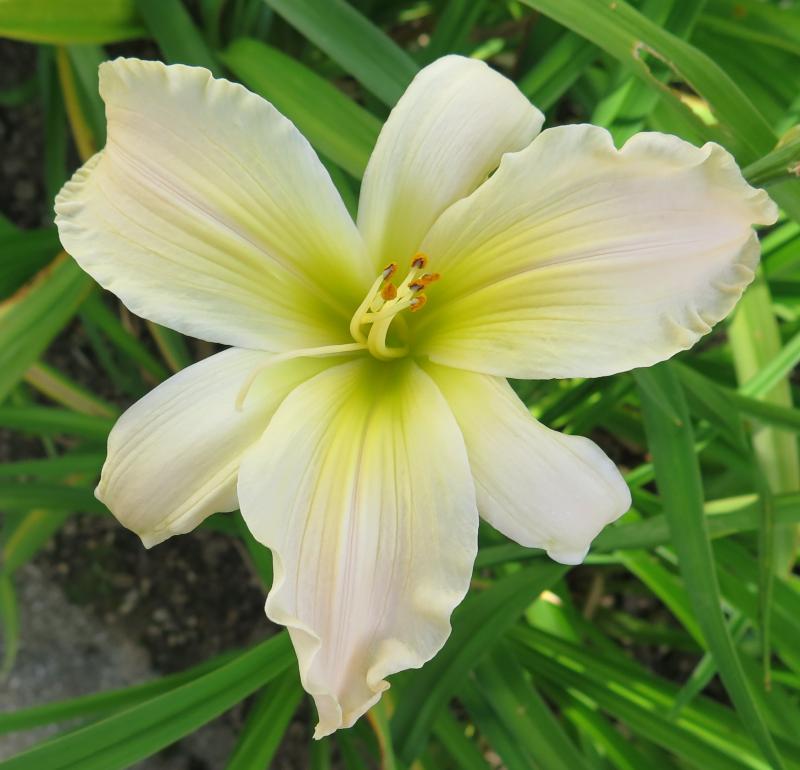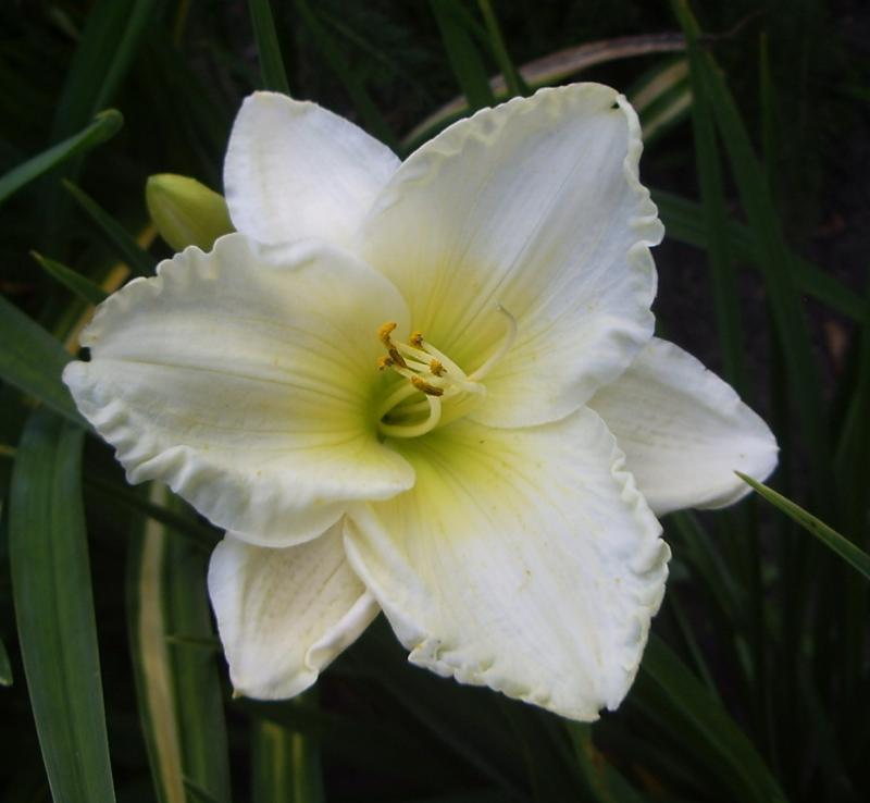 Gerade habe ich einen Sämling in Blüte, der mir äußerst gut gefällt.Der Samen ist noch aus einer HE-Aktion, das Schildchen verborgen im Blätterdschungel. Die Elternfrage muss also zunächst unbeantwortet bleiben.Nur etwa 70 cm hoch und der Blütendurchmesser liegt bei ca. 15 cm.Da die Temperaturen arg niedrig zur Zeit sind, ist es besonders schön, dass die Blüte gut öffnet.